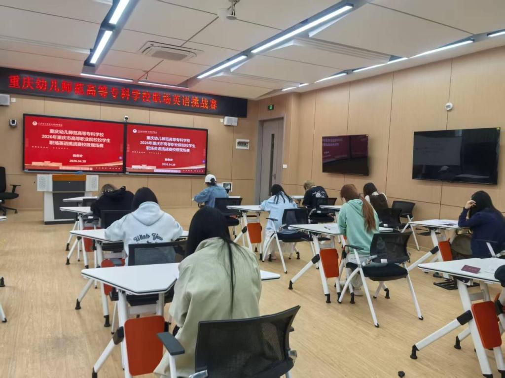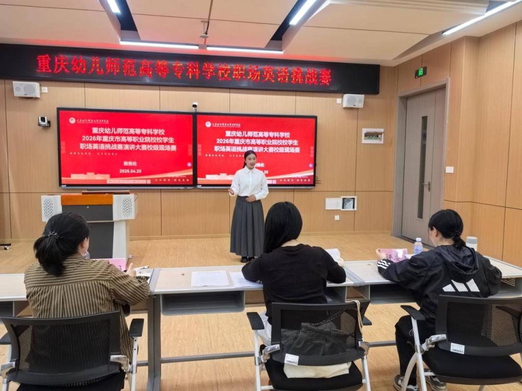2026年4月20日,学校在小湾校区成功举办了2026年重庆市高等职业院校学生职场英语挑战赛校级选拔赛。本次比赛由教务处组织,共设演讲大赛、写作大赛和跨境电商英语直播大赛三个赛项,吸引了来自多个学院的优秀选手参与。