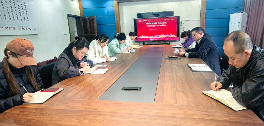 2026年3月2日下午,继续教育学院(培训学院)在塘坊校区召开了2026年重点工作部署会。会议深入贯彻落实学校发展战略,全面分析当前继续教育工作面临的新形势、新挑战与新机遇,系统部署2026年重点任务。会议由学院党支部书记谢贤安主持,学院全体教职工参加会议。