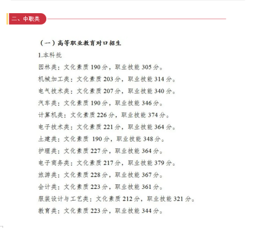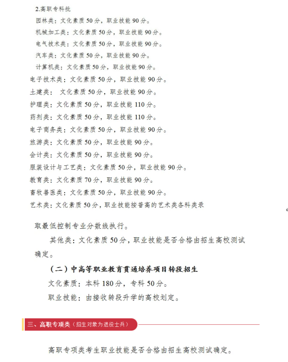 2026年重庆市高等职业教育分类考试招生录取最低控制分数线