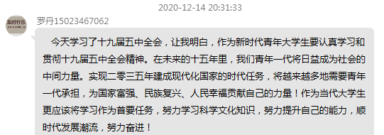 宣讲结束后师生们结合自身,进行了热烈的交流,深刻认识到作为新时代大学生的历史使命,不忘初心,牢记使命,紧跟核心,砥砺前行。用真挚的语言书写了内心的感受。