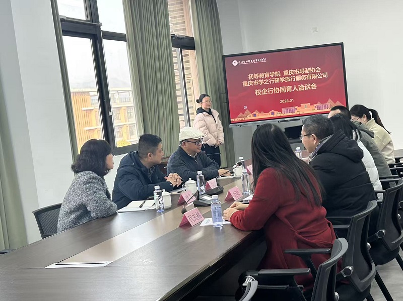 为进一步深化产教融合,推动教育链、人才链与产业链有机衔接,精准培育契合文旅行业发展需求的高素质复合型人才。近日,我院与重庆导游协会、重庆市学之行研学旅行服务有限公司在小湾校区2312室举办校行企协同育人洽谈会。学院党政负责人、研学旅行管理与服务专业教研室专业教师代表出席。