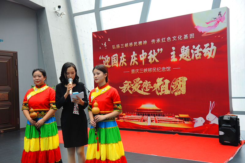 弘扬校文明精神、传承红色文化基因,9月30日音乐教育系20几名同学,受邀至万州区三峡移民纪念馆参与其“我爱你,中国”迎国庆、庆中秋主题活动。同学们通过美妙的歌声、曼妙的舞蹈、绝人于耳的葫芦丝声,将重庆幼专莘莘学子饱满的热情、蓬勃向上的精神风貌展现在了这金秋送爽、丹桂飘香之际的纪念馆中。此次同学们的实践学习获得了万州区三峡移民纪念馆、区广播电视台、区宣传部等单位的欣赏与认可。