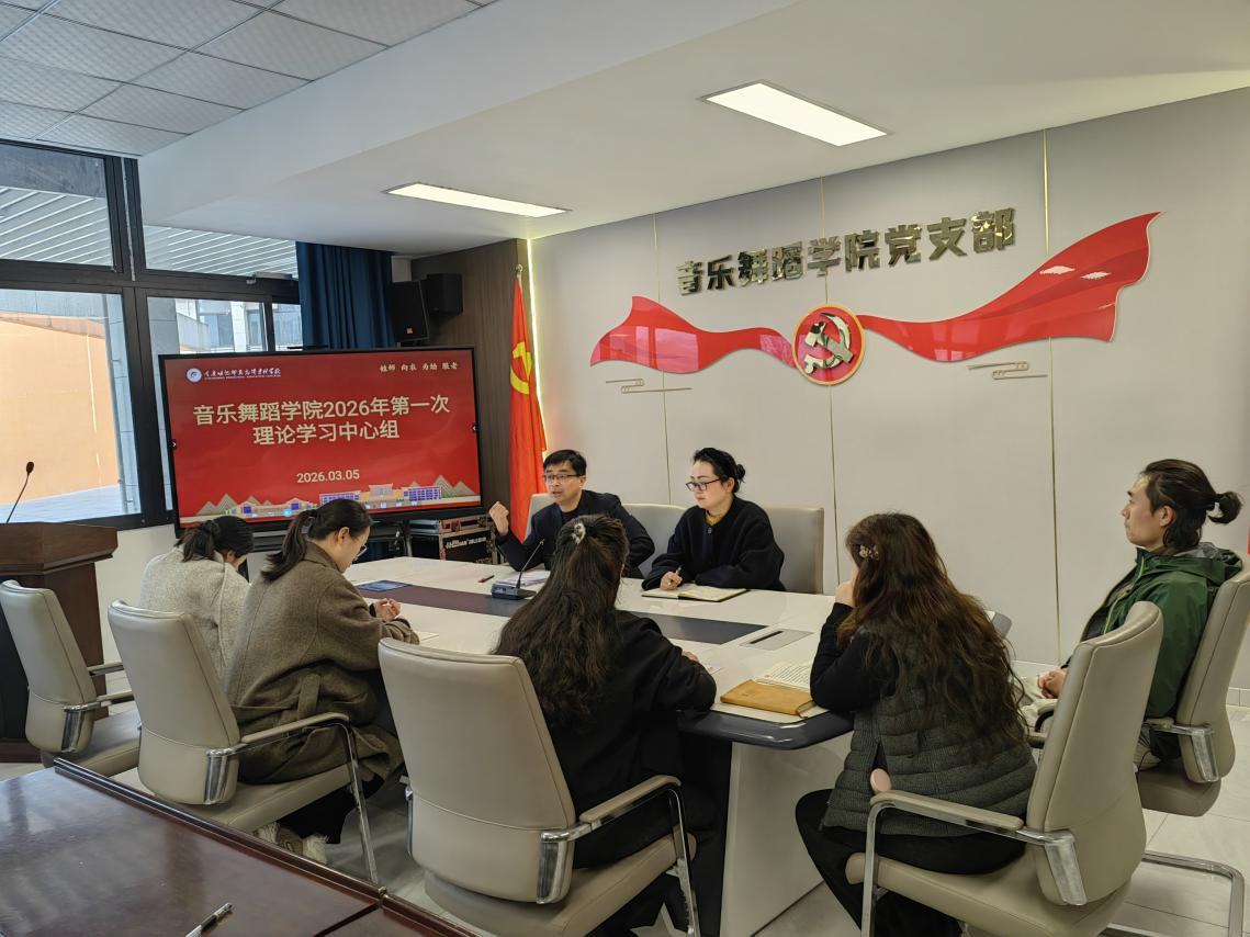 3月5日下午,音乐舞蹈学院党支部举行2026年第一次理论学习中心组学习,坚持不懈用党的创新理论凝心铸魂。副科级以上干部、支委委员、专职组织员参加学习。党支部书记赵洪斌主持学习。