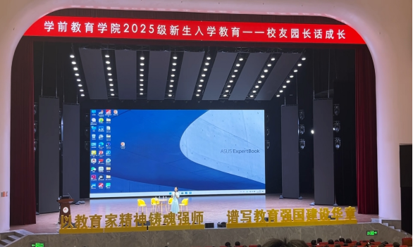 为引导2025级新生尽快融入大学环境、树立专业理想,2025年9月17日,学前教育学院在小湾校区活动中心隆重举行新生入学教育专题活动。本次活动以“校友园长话成长”为主题,特邀重庆市万州区电报路幼儿园教育集团园长熊壮、万州区钟鼓楼幼儿园园长任小燕、万州区上海飞士幼儿园园长杨玲三名我校杰出校友园长重返母校,分享从师范生到卓越园长的成长历程与教育智慧,弘扬教育家精神,强化师范生的使命意识与时代担当。