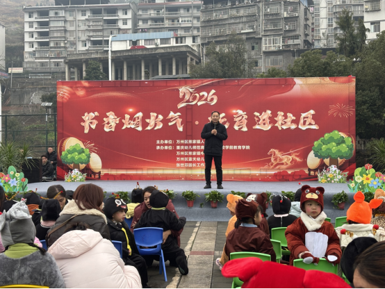 2026年1月26日上午,熊家镇广场洋溢着书香与烟火交织的温暖气息。由熊家镇政府主办,重庆幼儿师范高等专科学校学前教育学院与蓝天幼儿园联合承办的推进的“阅读+托育”进社区行动在此圆满开展。活动以“书香烟火气·托育进社区”为主题,吸引了众多幼儿和家长参与,重庆市职业院校学前教育教师教学创新团队和学前教育学院教师代表参加此次活动。