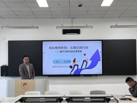 王博士以《高校教师转型:从理念到行动——基于川师大的访学思考》为题,从人口结构变化、高校治理改革与教师专业发展的时代需求出发,深入剖析高校教师转型的现实动因,提出构建跨学科视野与知识体系的核心发展理念。讲座紧扣大学教学、科研、社会服务三大职能,系统阐释了教学观、学生观、学习观的转型路径与实践方法,分享了科研创新突破、论文写作发表的实操策略,以及社会服务的方向与路径,内容兼具理论深度与实践价值,为教师专业成长提供了指导。