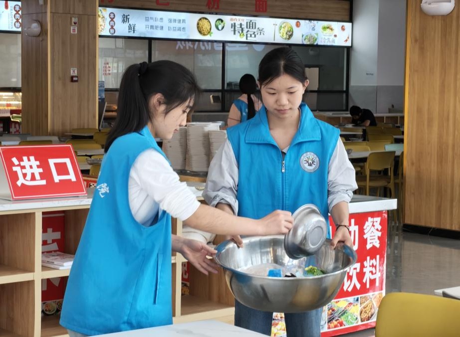 志愿者们以饱满热情投入服务,认真负责,用行动守护食堂整洁与秩序,赢得了师生广泛认可。