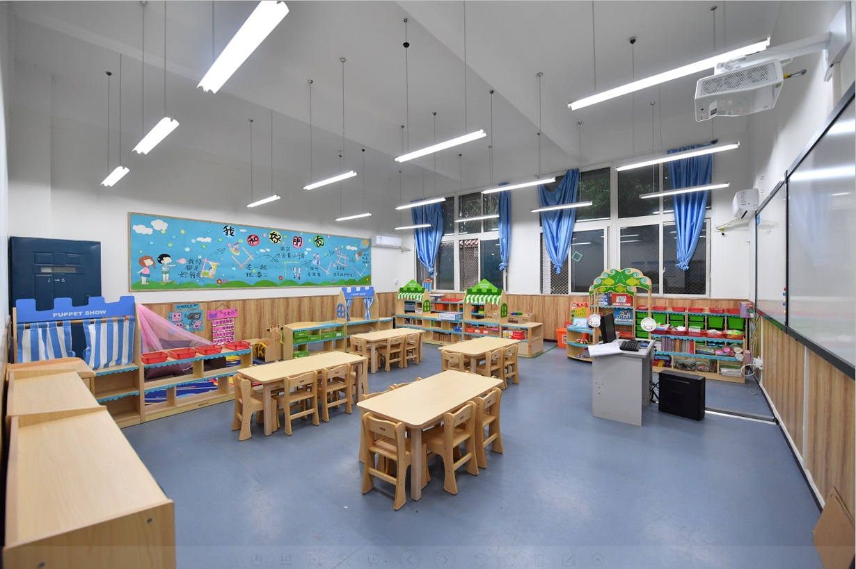 仿真幼儿园综合实训室主要为学生提供模拟真实的幼儿园环境,开展一日生活指导、游戏活动指导、教育活动实施等课程的实训,使教师更好地实施教学过程对接工作过程,培养学生幼儿园教师核心能力和职业素养。主要承担《幼儿园教育活动指导》《幼儿园游戏活动指导》等课程的实训项目。