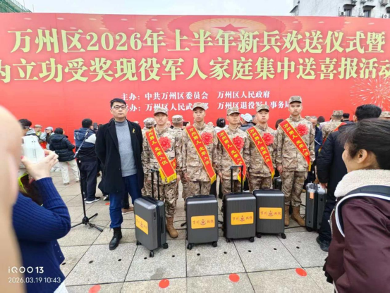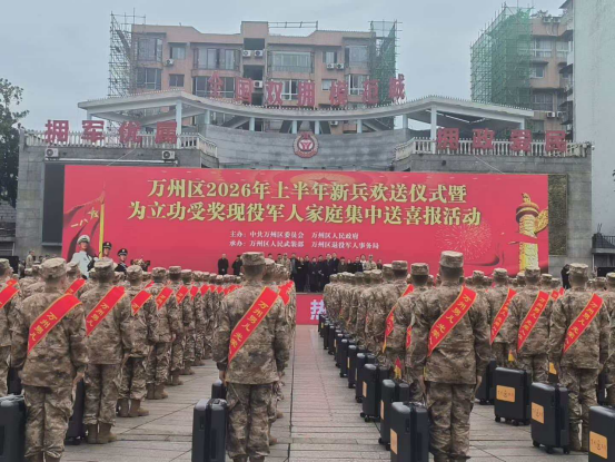 征途如虹,军歌嘹亮。3月19日,我校参加了由万州区人民武装部组织的盛大送兵仪式。本次活动旨在表彰即将光荣入伍的青年学生,激励他们积极投身国防事业,献身强军实践,同时进一步面向全体大学生开展征兵政策宣传,切实增强广大学子的国防观念与爱国热情。