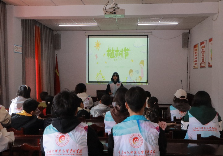 活动伊始,在志愿者小老师的趣味宣讲下,小朋友们走进了“绿色课堂”,学习有关“植树节”的知识,提升了孩子们植树护绿的意识。