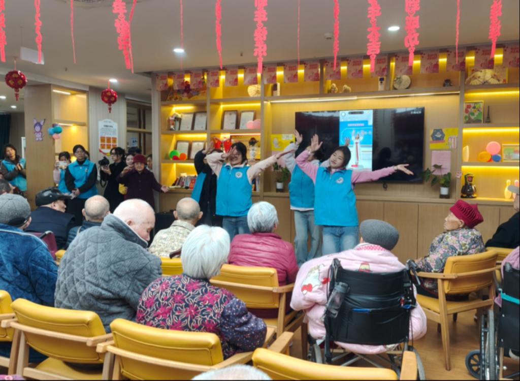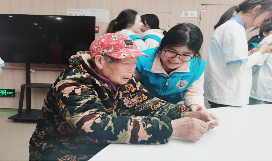 学院党团联动,由党支部指导青年志愿者协会组织预备党员、入党积极分子及团员青年前往养老院开展志愿服务,志愿者结合专业特长为老人带来《雷锋日记》朗诵、合唱、舞蹈等文艺表演,带领老人开展低强度音乐律动、脑力互动游戏,还一对一协作制作小花贺卡,用耐心与爱心为银发老人送去关怀与欢声笑语。