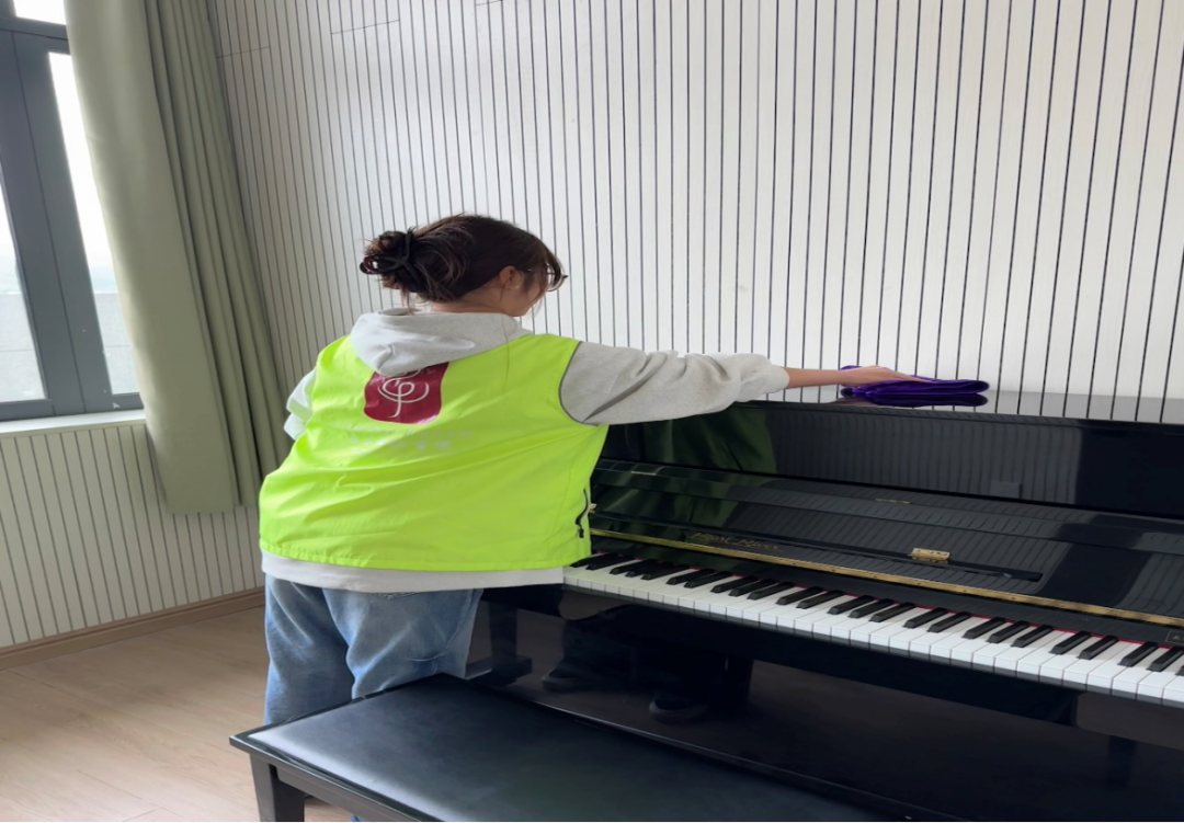 学院组织青马成员与新团员开展琴房专项清扫志愿活动,前期完成志愿者分组、动员培训与工具分发,活动中志愿者对各楼层琴房地面彻底清扫,擦拭门窗、桌椅及钢琴表面,规整琴谱、座椅等物品,同时倡导文明练琴习惯,活动后还开展成果检查与总结,让琴房学习环境焕然一新,强化了学子的劳动意识与奉献精神。