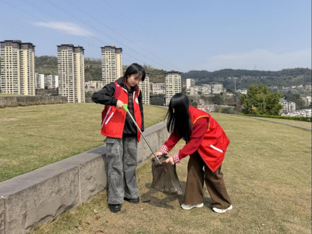 学院 “青村研学” 实践团组织 20 余名青年志愿者开展 “洁小青” 志愿服务活动,志愿者们分组行动,一组对园区沿途塑料瓶、烟头、食品包装袋等废弃物开展拉网式清理,细致排查卫生死角;另一组向游园市民发放环保宣传单,普及低碳出行、文明游园的绿色理念,以青春行动守护生态环境。