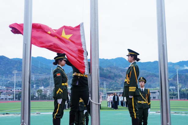 上午7时30分,升旗仪式正式开始。校国旗护卫队身着制服,步伐整齐,护卫五星红旗走向升旗台。伴随着国歌,五星红旗冉冉升起、迎风飘扬。全体团学骨干肃立注目、高唱国歌,爱国情怀与荣校之心在心中激荡。