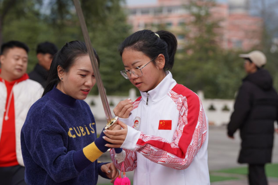 为进一步加深老挝师生对传统器械的体验,活动特别设置了一对一教学环节。老挝师生根据个人兴趣选择心仪的器械,徐大联老师与我校武术队队员共同担任指导,耐心讲解动作要领,手把手教授握法、身法与发力技巧。老挝师生热情高涨、积极互动,在一招一式的亲身体验中,真切感受到中华传统体育文化的博大精深。