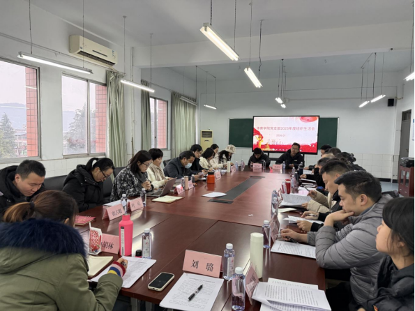 会前,支部委员会严格按照学校党委《关于召开2025年度组织生活会和开展民主评议党员的通知》要求,认真研究部署,扎实做好各项准备工作。一是组织全体党员深入学习党章、党的二十届四中全会精神、习近平总书记关于教育的重要论述及视察重庆重要讲话重要指示精神,统一思想,提高认识。二是广泛开展谈心谈话,严格落实“四必谈”要求,党支部书记、支委、党员之间深入交流思想、交换意见,累计征求各类意见建议九条。三是全体党员对照要求,深入查摆自身在政治信仰、党员意识、理论学习、能力本领、作用发挥、纪律作风等方面存在的突出问题,认真撰写个人对照检查剖析材料,党支部书记牵头起草支部班子对照检查材料,为高质量开好会议奠定了坚实基础。